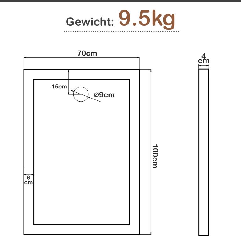 Tento konkrétní model sprchové vaničky je vyroben ze spolehlivého akrylátu a má hloubku 4 cm, což umožňuje snadnější přístup do sprchy. Stylová a elegantní sprchová vanička s velmi tenkým profilem. Má snadno čistitelný lesklý povrch. Tento model je třeba zvednout 12 cm od podlahy. Oboustranná instalace - podstavec lze namontovat podle potřeby. Poznámka: Nožičky k vaně a odtoková souprava nejsou součástí dodávky.