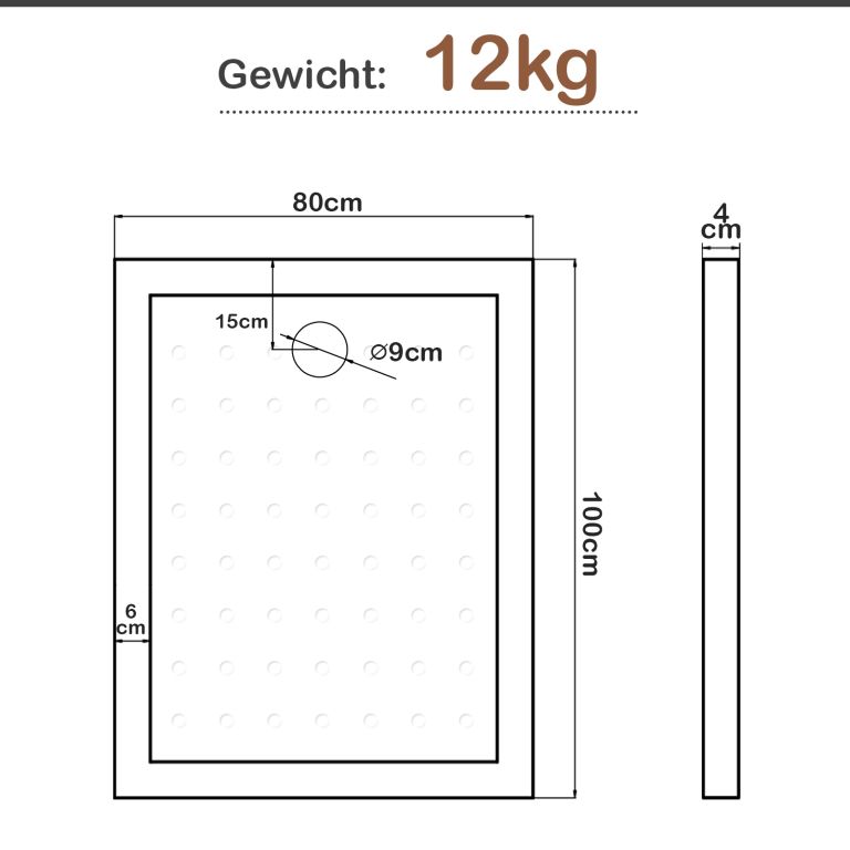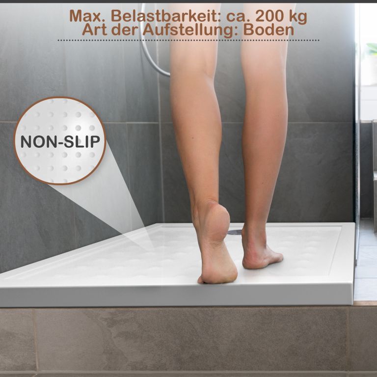 Tento konkrétní model sprchové vaničky je vyroben ze spolehlivého akrylátu a má hloubku 4 cm, což umožňuje snadnější přístup do sprchy. Stylová a elegantní sprchová vanička s velmi tenkým profilem. Má snadno čistitelný lesklý povrch. Tento model je třeba zvednout 12 cm od podlahy. Oboustranná instalace - podstavec lze namontovat podle potřeby. Poznámka: Nožičky k vaně a odtoková souprava nejsou součástí dodávky.