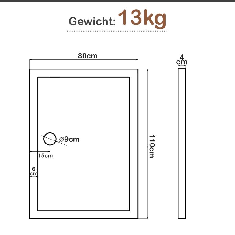 Tento konkrétní model sprchové vaničky je vyroben ze spolehlivého akrylátu a má hloubku 4cm, což umožňuje snadnější přístup do sprchy. Stylová a elegantní sprchová vanička s velmi tenkým profilem. Má snadno čistitelný lesklý povrch. Tento model je třeba zvednout 12 cm od podlahy. Oboustranná instalace - podstavec lze namontovat podle potřeby. Poznámka: Nožičky k vaně a odtoková souprava nejsou součástí dodávky.