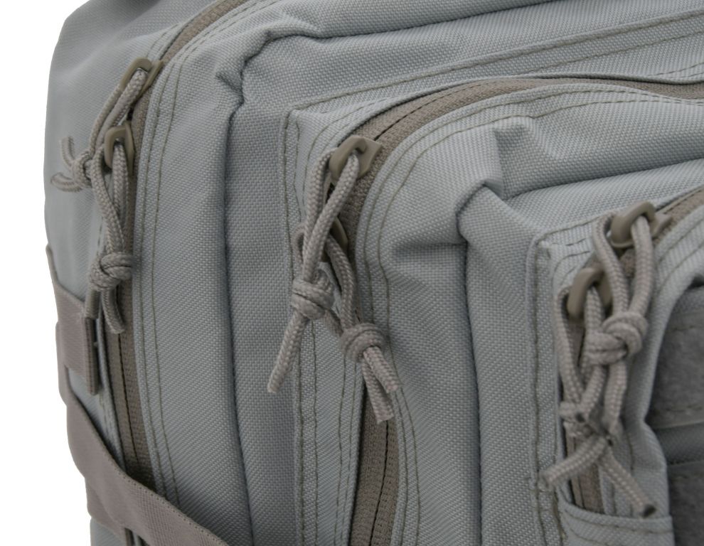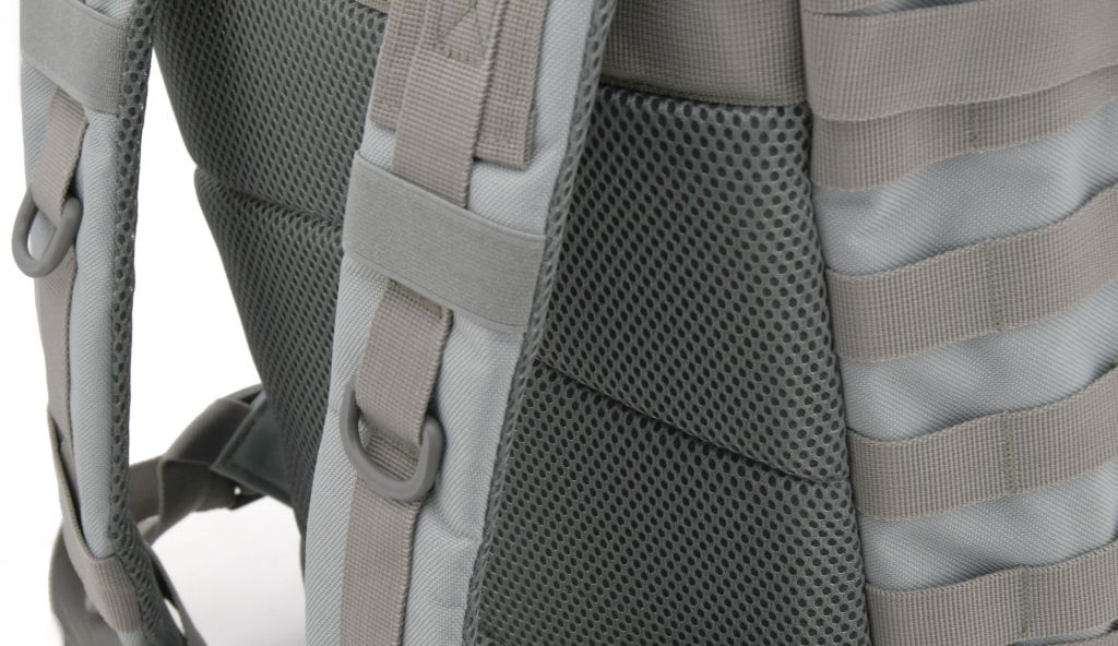Objemný polstrovaný batoh opatřený 2x hlavními, 2x vedlejšími a 5x vnitřními kapsami z nichž jedna je zapínací na zip. Zadní část je doplněna o větranou kapsu na suchý zip. Z čelní strany a na bocích je batoh opatřen Molle systémem pro uchycení dalšího vybavení, molle vazba na vrchní kapse je opatřena suchým zipem. Veškeré kapsy jsou osazeny bytelným dvoucestným zipem. Jedna z vnitřních kapes je opatřena klasickým zipem. Pro pohodlné nošení jsou zádová část a vnitřní strany popruhů vypolstrovány. Tašku je možné pomocí nastavitelných popruhů potřebně nastavit pro maximální pohodlí. Po naložení je tašku možné stáhnout pomocí kompresních popruhů na klips, pro docílení kompaktnějších rozměrů.