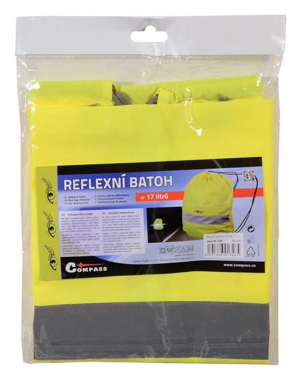 Batoh výstražné barvy opatřený reflexním pruhem s vysokou odrazivostí světla. Batoh lze nosit jak klasicky přes obě ramena, tak i jako jednoduchý vak na sportovní potřeby přes jedno rameno.