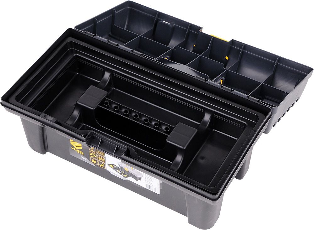 Plastový kufr s vnitřní vyjímatelnou vložkou na drobné předměty.
