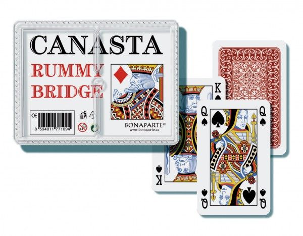 Canasta je velice známá společenská hra, oblíbená napříč generacemi. Karty hrají rády děti, rodiče i prarodiče. Karty jsou skladné a vejdou se do každého batůžku či cestovní tašky. Na dovolené prší? Nevadí, zahrajte si karty a hned budete mít lepší náladu. Karty jsou uložené v uzavíratelné plastové krabičce. Konkrétní barvu nebo druh výrobku není možné z technických důvodů zvolit, objednávce bude přidělena náhodná varianta dle skladových možností.