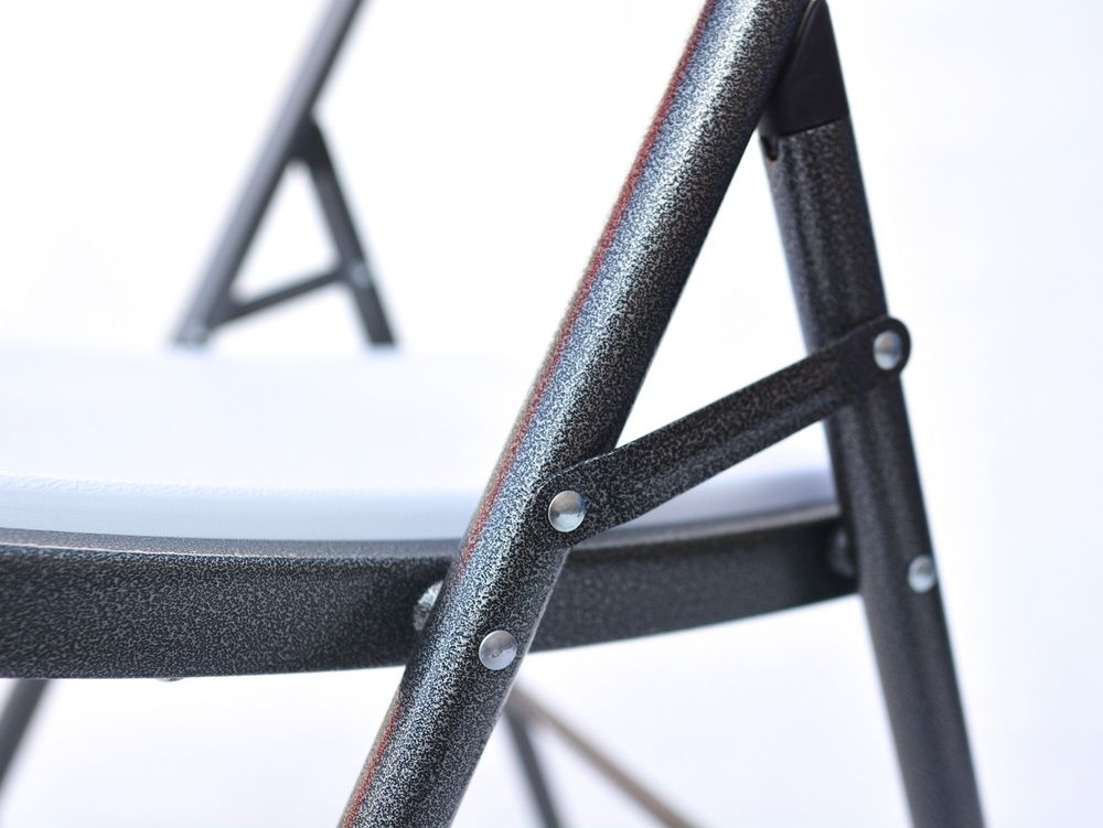 Konstrukce je ošetřena kladívkovou barvou. Křeslo je vhodné do interiéru i exteriéru. Ideální pro cateringové a campingové aktivity.