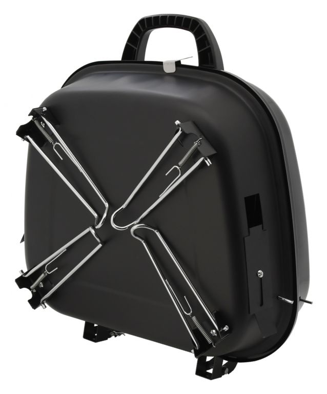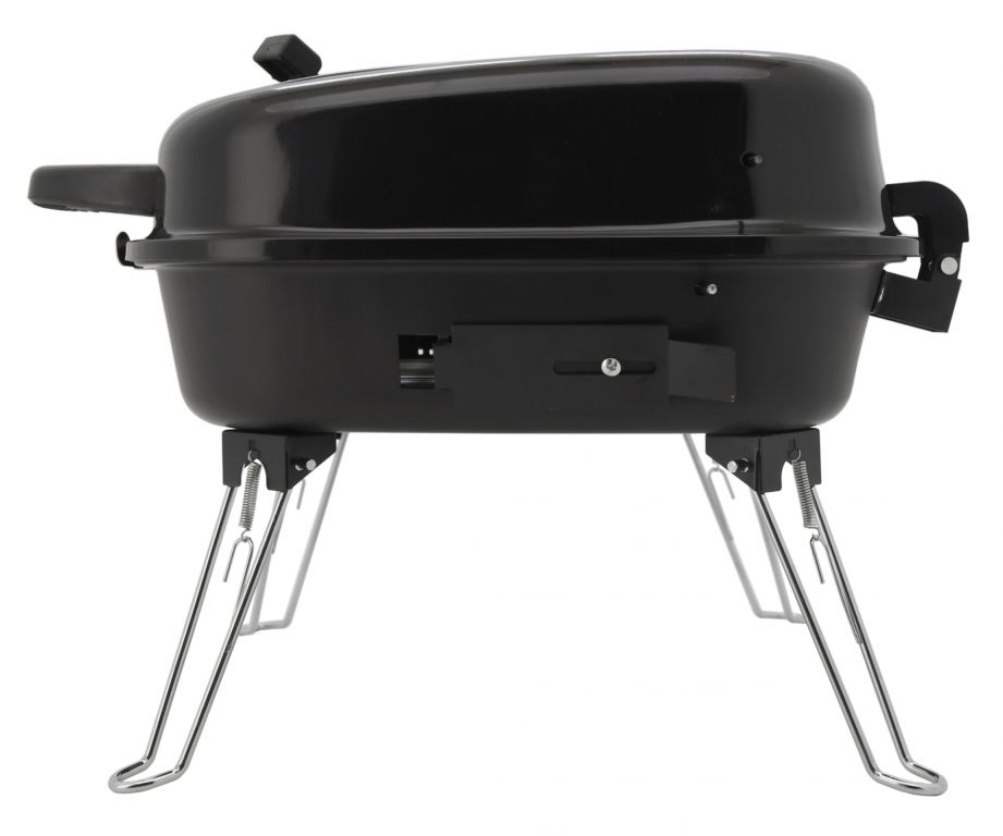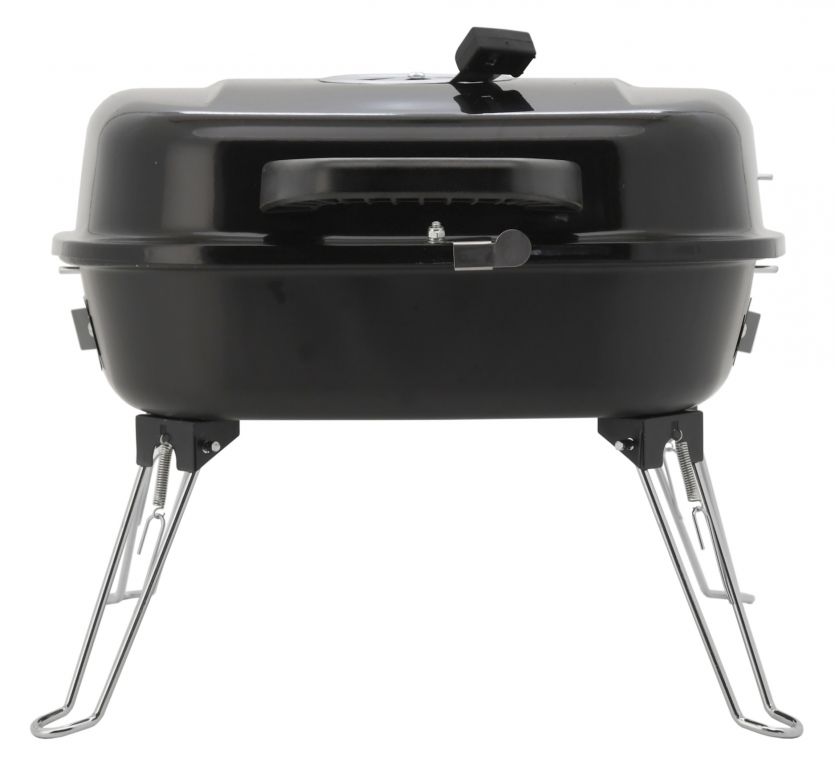 Konstrukce je vyrobena z kvalitního smaltovaného ocelového plechu černé barvy. Stabilitu zajištují čtyři kovové rozkládací nohy. Pro tepelnou přípravu pochutin je gril opatřen ocelovým roštem 35 x 33 cm. Gril je vybaven regulovatelnou ventilací na víku. Grilovací prostor je navíc opatřen odkládacím roštem. Pro snadné přenášení je složený gril zajištěn páčkou a pomocí rukojeti lze snadno přenášet.