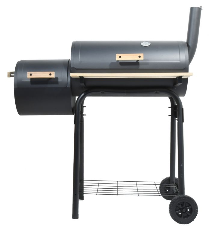 Gril je vybaven komínem s uzavíratelnou klapkou, prostornou grilovací plochou s chromovaným ocelovým roštem, víkem a sekundárním grilovacím prostorem pro nepřímé grilování či zauzení. Víko je opatřené vestavěným teploměrem pro kontrolu teploty, rozměrná grilovací plocha s chromovanou mřížkou a praktická odkládací police v přední části grilu zajistí pohodlnou přípravu pochutin. Pro regulaci proudění vzduchu lze nastavit klapku na komínu a zaroveň otevřít přívod vzduchu na boku sekundárního grilovacího prostoru.