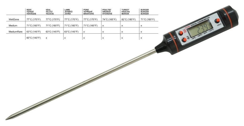 Sada obsahuje veškeré nástroje pro přípravu a konzumaci nejrůznějších pokrmů, ale i následnou údržbu grilu. Veškeré nástroje jsou navíc kvalitně zpracovány z nerezové oceli. Mimojiné je součástí sady i injekce pro aplikaci marinády do masa a praktický teploměr s nerezovou sondou pro ověření provedení masa s rozsahem měření -50 - 300°C. O napájení teploměru se stará 1x baterie LR44 (1,5V). Sada je úhledně umístěna v textilní brašně a hodí se pro ty nejnáročnější vyznavače dobrého jídla. Výčet jednotlivých nástrojů ocení kdokoliv. Sada je primárně určena k využití doma na zahradě, ovšem užitečná je i na cestách.
