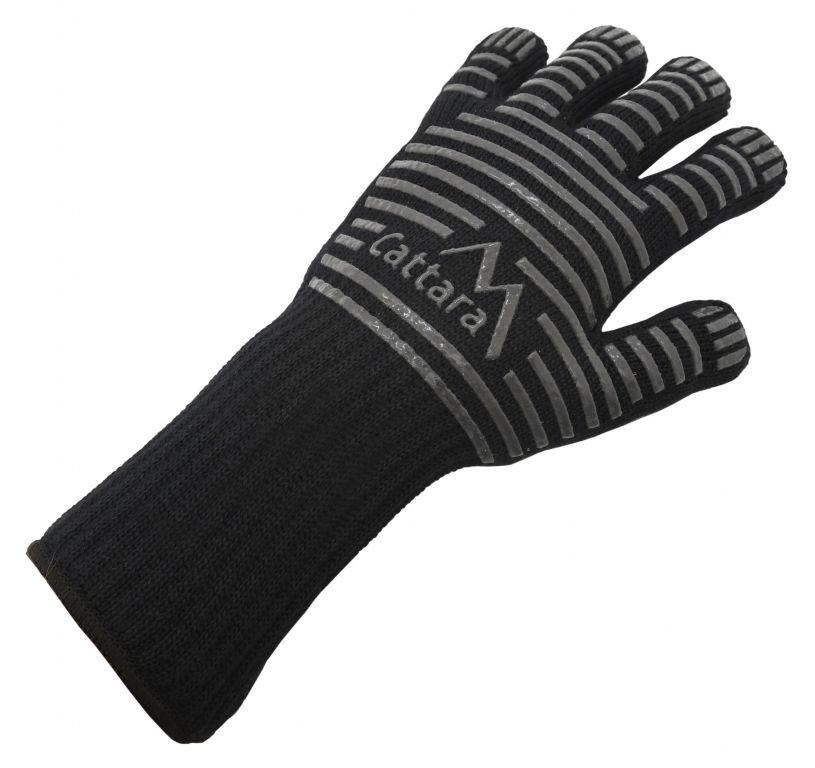 Rukavice - pomůcka ke grilování zajistí chranu Vašich prstů, dlaně a díky úpletu i významnou část předloktí. Díky univerzální velikosti je vhodná téměř pro kohokoliv.Vnějšek rukavice je vyroben z aramidových vláken a bezpečně chrání před teplotami. Svrchní část je navíc opatřena silikonovými prvky, které brání před vyklouznutím předmětů a zajistí tak bezpečnou manipulaci s grilovacím náčiním. Vnitřek je vyroben z příjemného materiálu a nabízí tak pohodlí při nošení rukavice.