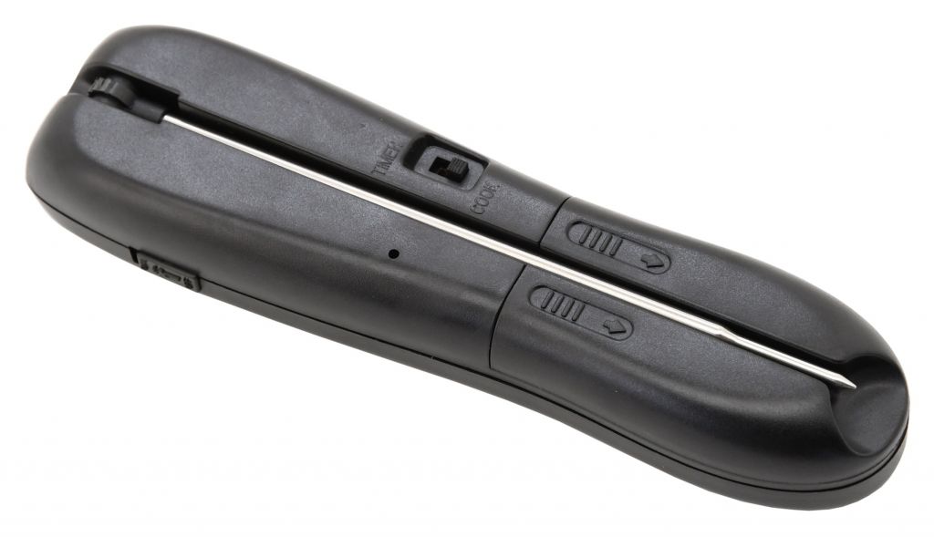 Praktický, skládací pomocník pro grilování opatřený digitálním teploměrem, či časovačem a chytrým nastavitelným prostředím. U přístroje lze nastavit druh masa a požadovaný stupeň propečení a dokonce vlastní (hovězí, telecí, jehněčí, vepřové, kuře a krocan, burgery) USER režim pro nastavení libovolné teploty. Po dosažení nastavených teplot začne přístroj signalizovat zvukovým tónem a blikáním displeje. Přístroj lze rovněž použít jako časovač, který pohlídá dosažení nastaveného času. Zařízení je navíc opatřeno led svítilnou pro přísvit při grilování ve večerních hodinách. O napájení se starají 2x AAA baterie.