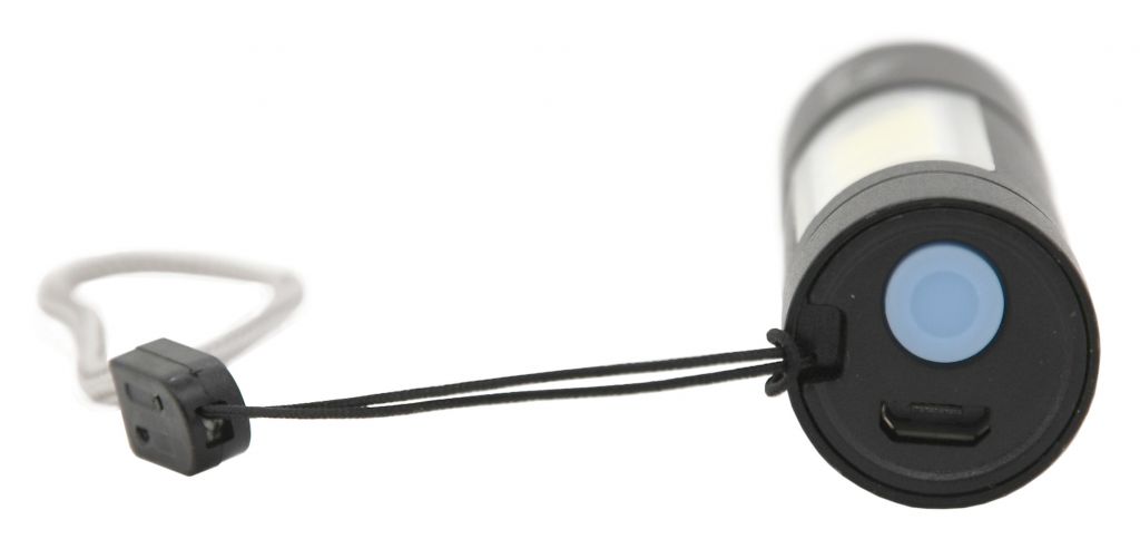 Kapesní svítilna drobných rozměrů se dvěma zdroji světla a dobíjením pomocí USB kabelu.