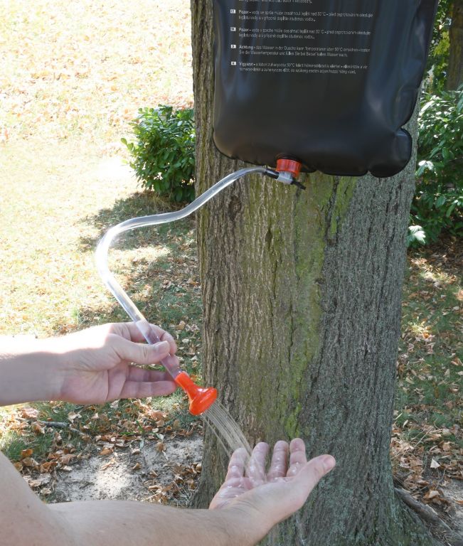 Kempingová sprcha s objemem 20l vhodná pro k zavěšení na strom, v kempu a na jiných místech.