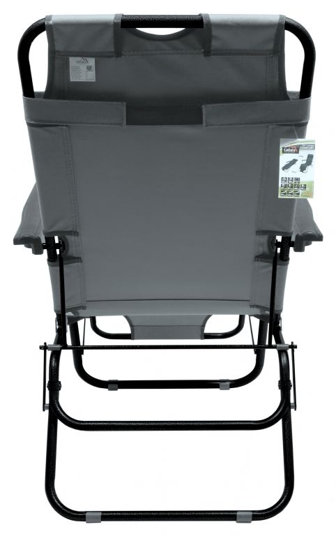Lehátko lze používat konvenčním způsobem, nebo lze složit do podoby rybářského křesla, jež ocení kdejaký outdoor nadšenec. Lehátko je opatřené výškově nastavitelným polštářem a opěrkami rukou pro maximální pohodlí.