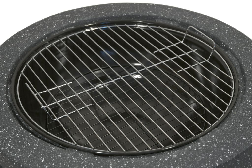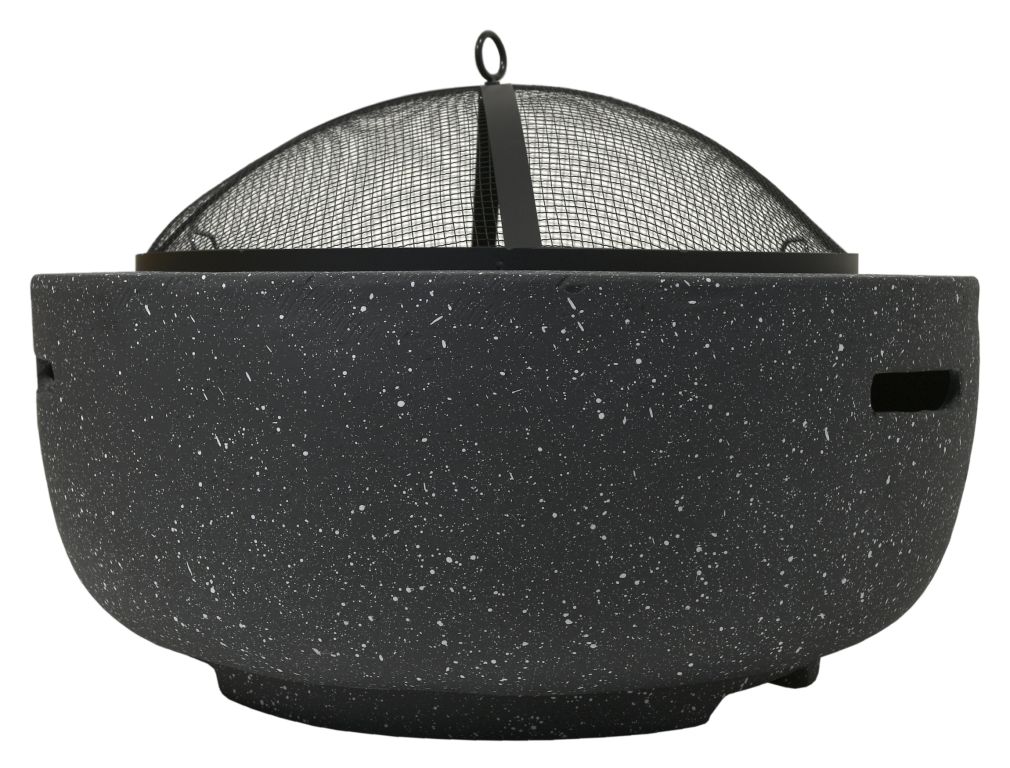 Přenosné ohniště na dřevo v šedém provedení je díky robustnímu tělu z umělého kamene velmi stabilní a jeho výjimečný vzhled zkrášlí kdejakou zahradu.