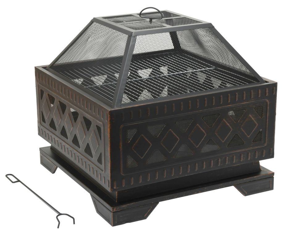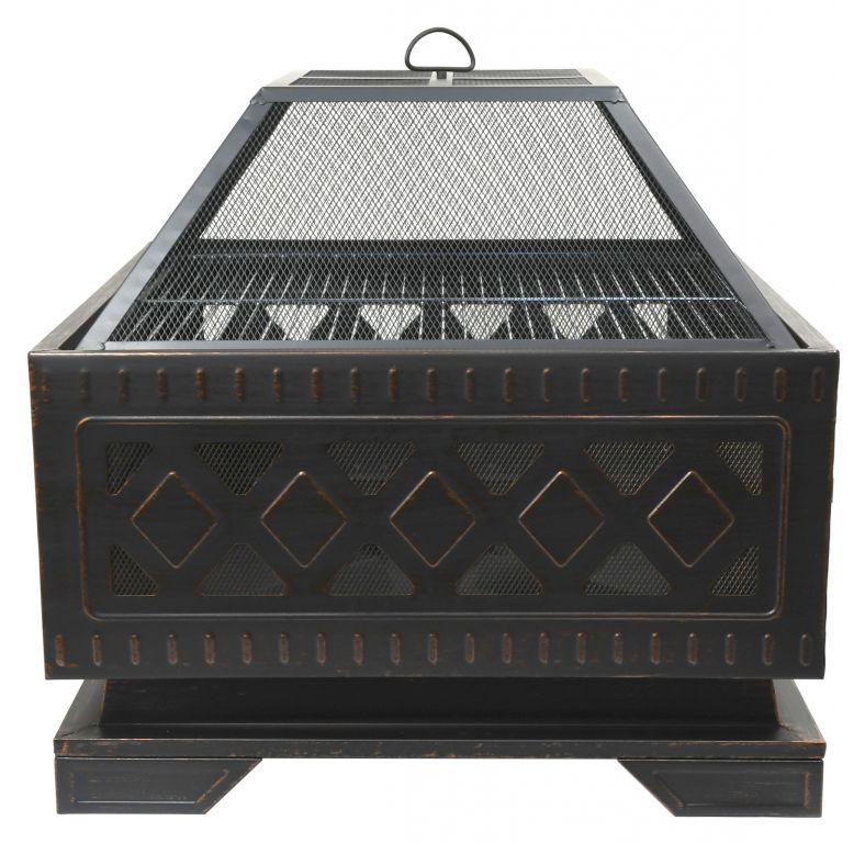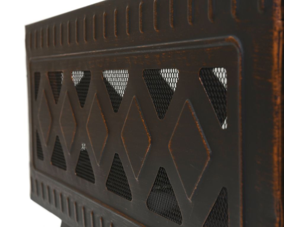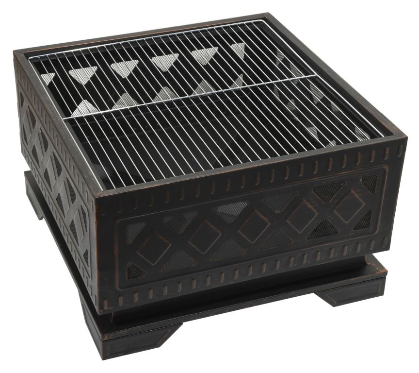 Přenosné ohniště na dřevo SQUARE, s čtvercovou konstrukcí vhodné na terasy a zahrady. Konstrukce ohniště je vyrobena z kvalitní oceli s vysokoteplotním černým/měděným nátěrem s patinou. Speciálně tvarovaný poklop s pletivem poslouží jako ochrana před jiskrami, což výrazně zvyšuje bezpečnost a pohodlí. Ohniště je navíc vybaveno bytelným podstavcem, jeho umístění tak nabízí zkrášlení prostoru.