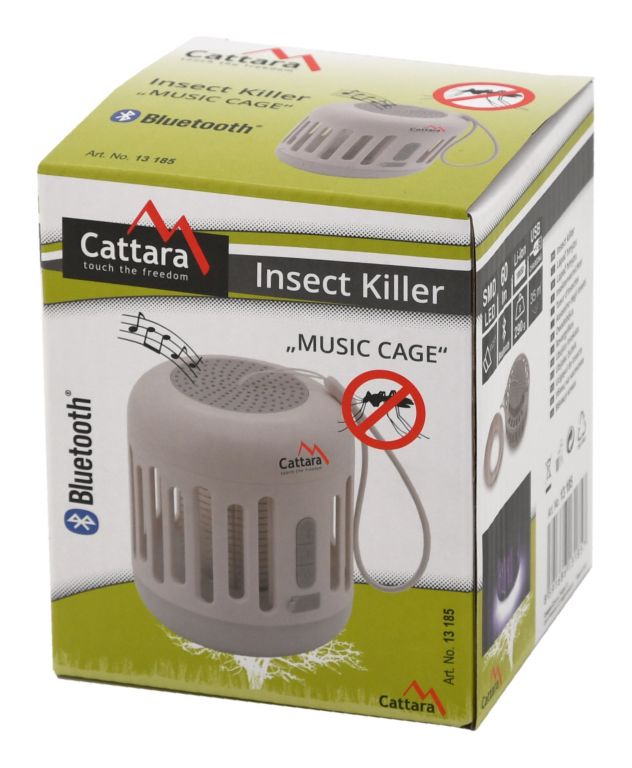 Elektronický lapač hmyzu s funkcí Bluetooth pro přehrávání hudby. Zařízení využívá světlo s ultra fialovými paprsky, kterými efektivně láká létavý hmyz (např. mouchy, můry, moly, komáry a další). Hmyz je po kontaktu s kovovou sítí pod vysokým napětím zahuben elektrickým proudem. Přístroj k hubení nevyužívá žádných chemických látek, pracuje bez zápachu a bez znečištění. Přístroj lze využít i jako stolní lampičku a zároveň jako přehrávač hudby pomocí Bluetooth přenosu z Vašeho chytrého zařízení, jednoduchým stiskem tlačítka pro spárování. Přístroj je určen k položení na stůl, nebo k přenášení pomocí popruhu na vrchní straně zařízení. Zařízení je napájeno pomocí Li-Ion akumulátoru 18650 s kapacitou 1800mAh. Nabíjení je řešeno pomocí přiloženého napájecího kabelu.