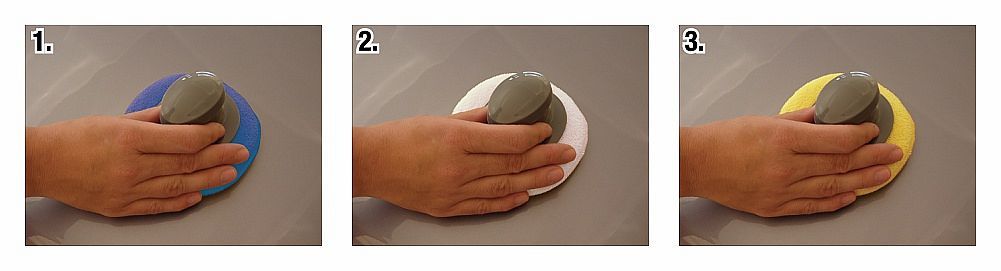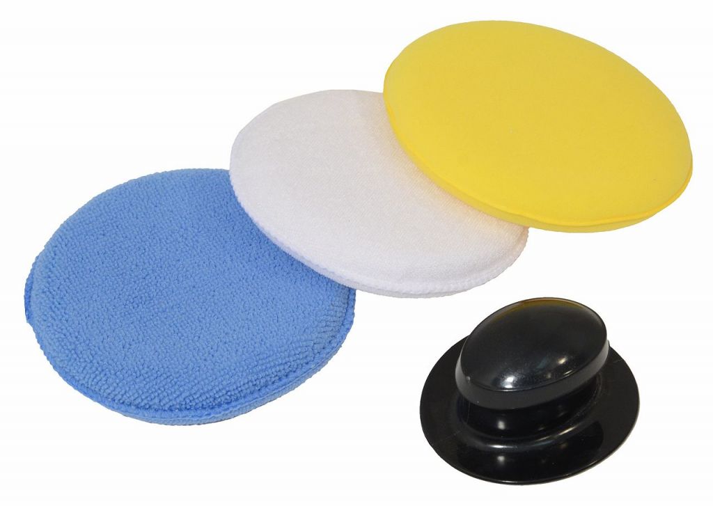 Sada tří kotoučů o průměru 12 cm pro dokonalé ruční vyleštění karoserie vozu. Ergonomická rukojeť je vyrobena tak, aby se dala použít na každý kotouč.