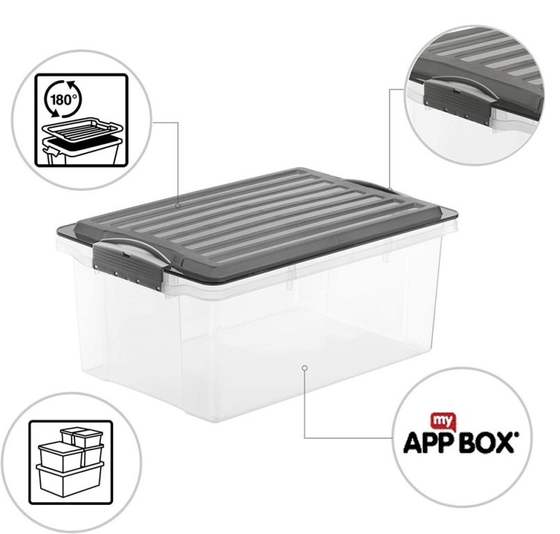 Úložný box o objemu 13L. Transparentní box + růžové víko. Víko je opatřeno klipy proti nežádoucímu otevření. Box je vhodný pro formát A4. Kvalitní materiál a provedení.
