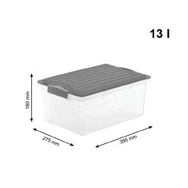 Úložný box o objemu 13L. Transparentní box + růžové víko. Víko je opatřeno klipy.