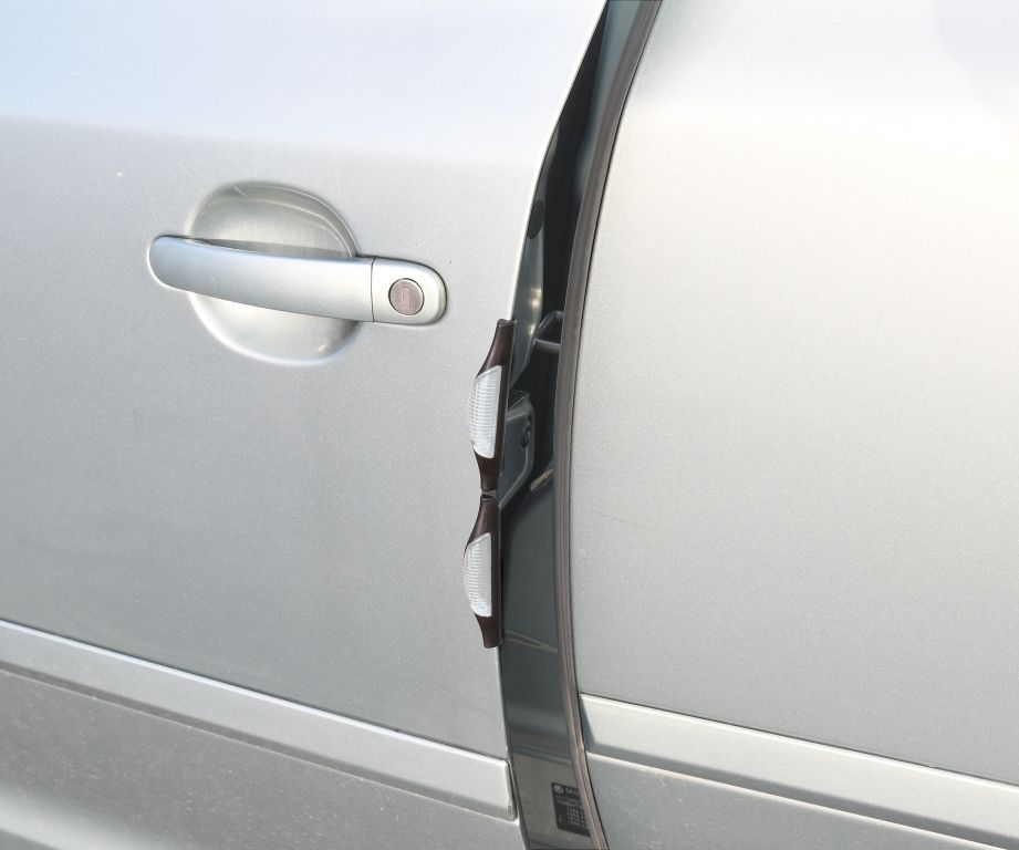 Sada dvou kusů plastových chráničů s reflexními odrazkami pro dveře vozidel. Chraniče jsou tvarovány z plastu, prostřední část je zůžena a díky tomu je možné chránič ohýbat. K připevnění není třeba žádného nářadí, chrániče se pouze nasadí na hranu dveří vozidel, lze nasadit i na tvarovaná místa.