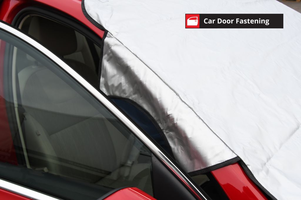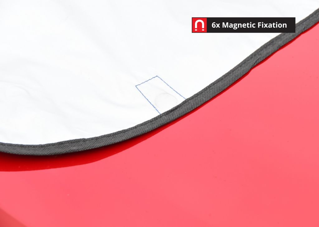 Tato praktická ochrana Vám ušetří čas strávený škrábáním vrstvy ledu a vytápěním v zimním období. Lze ji však použít i jako tepelnou izolaci v horkých letních dnech, kdy brání nadměrnému ohřívání i vyblednutí interiéru vlivem UV záření. Clona dvouvrstvé konstrukce, svými rozměry zabezpečí překrytí celého čelního skla včetně stěračů. Produkt lze velice snadno a rychle nasadit. Stačí položit na čelní sklo a upevnit přivřením uší na bocích do dveří. Hrana clony je navíc opatřena všitými magnety, které clonu pevně uchytí na karoseri vozu.