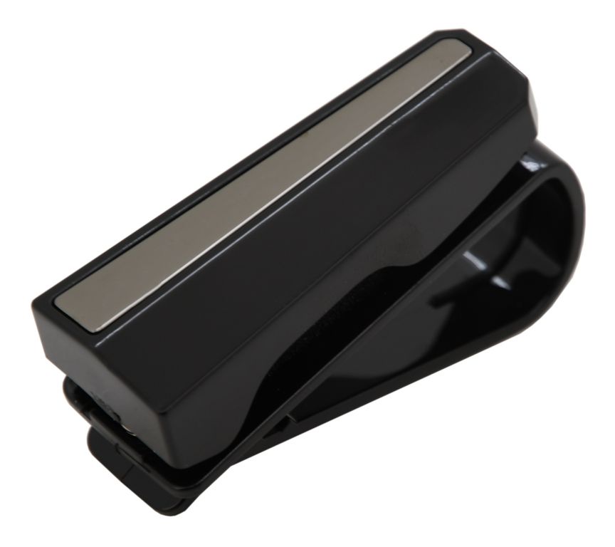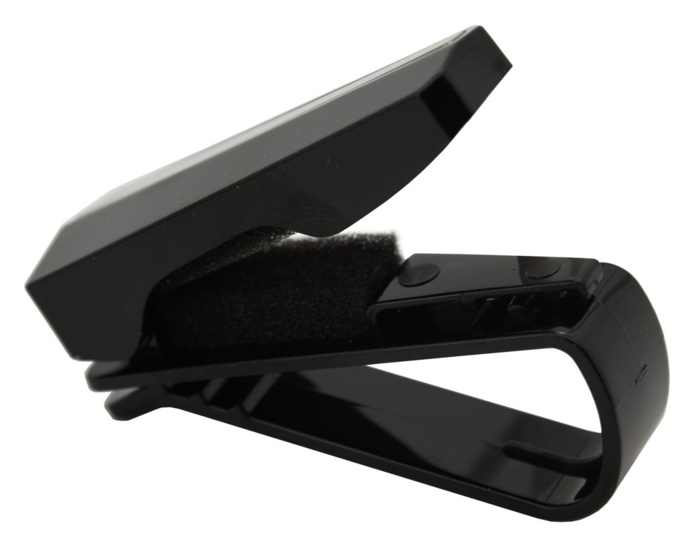 Umístění držáku na sluneční clonu, či jiný záhyb v interiéru vozu (max. šířka 2 cm) je snadný a bezpečný způsob pro umístění brýlí na dosah ruky. Držák je navíc uzpůsoben i pro držení karet (např. slevové karty Vaší oblíbené čerpací stanice). Klip držící brýle je opatřen pěnovou výstýlkou, takže nehrozí poškrábání uložených brýlí.
