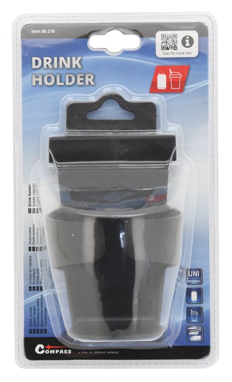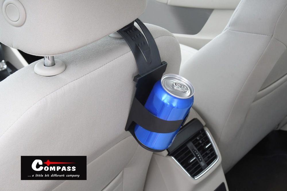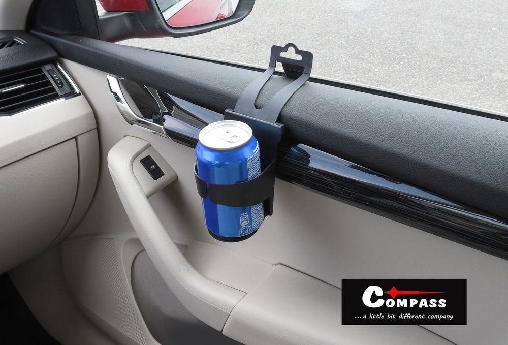 Držák je tvarován z pružného materiálu, závěsná část je ze zadní strany vyztužena pro zajištění přilnavosti a tím snižuje riziko pohybu držáku s nápojem za jízdy. Držák lze připevnit typicky za hranu dveří (do těsnění okna), pomocí otvoru lze umístit na tyčku hlavové opěrky, nebo na jiné vhodné místo ve Vašem voze.