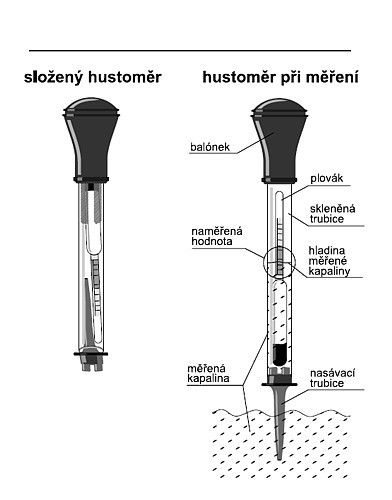 Zařízení určené k měření náplně chladiče automobilu. Pomocí tohoto hustoměru lze měřit kapaliny na bázi glykolu i chladicí kapaliny na bázi metanolu. Měření stavu kapaliny se provede nasátím chladicí kapaliny do skleněné trubice. Odečtením hodnot na plováku lze zjistit teplotu (ve stupních Celsia), při níž měřená kapalina zamrzá.