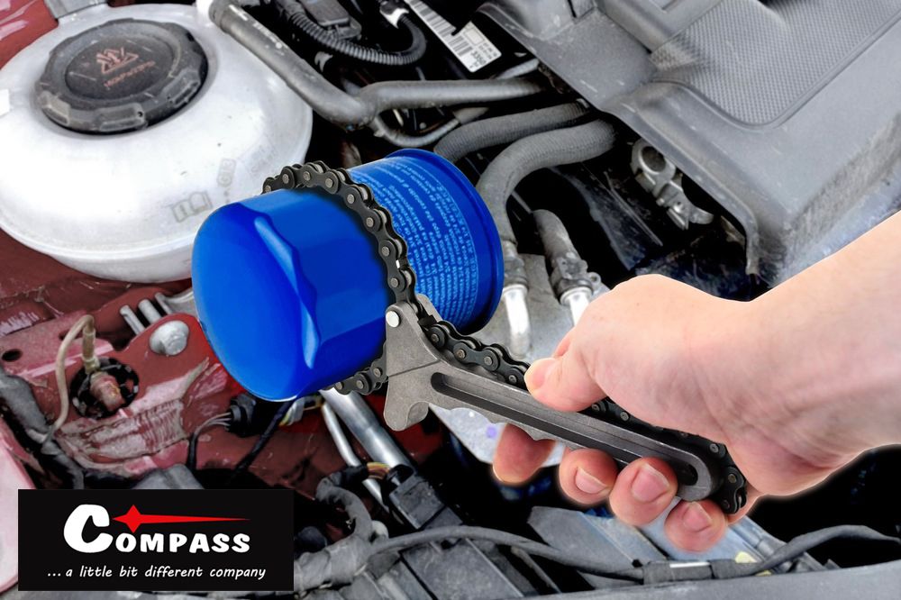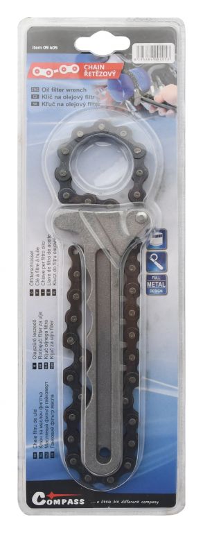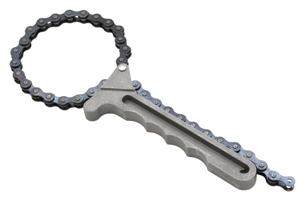 Univerzální řetězový klíč pro montáž a demontáž většiny typů olejových filtrů. Klíč je možné použít pro filtry až do průměru 105 mm.
