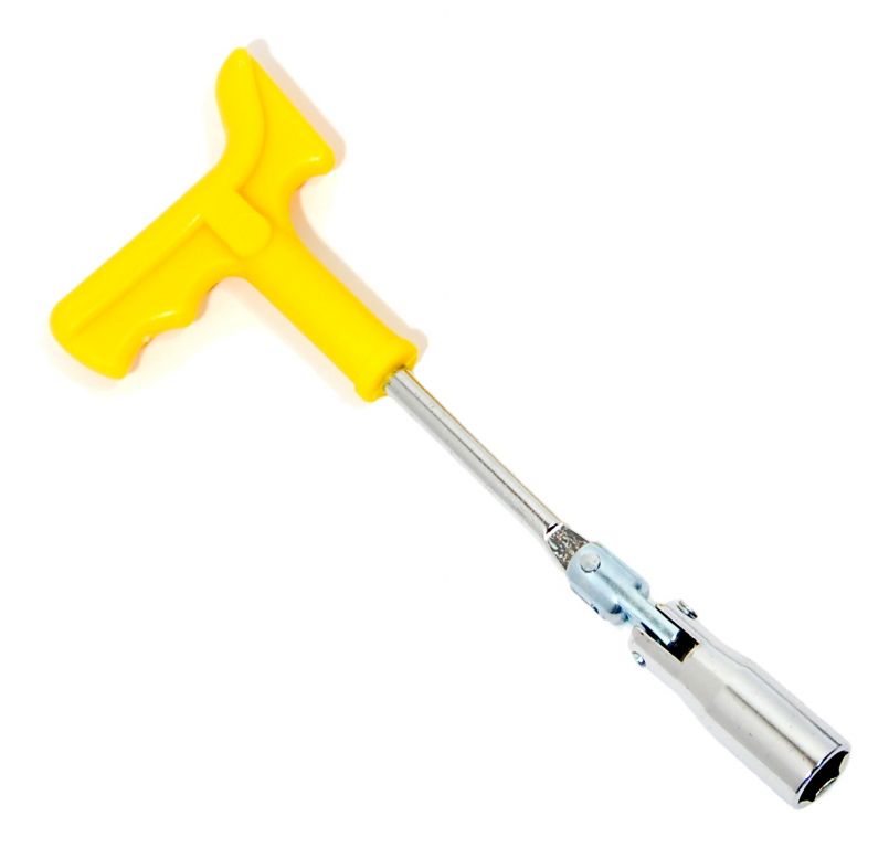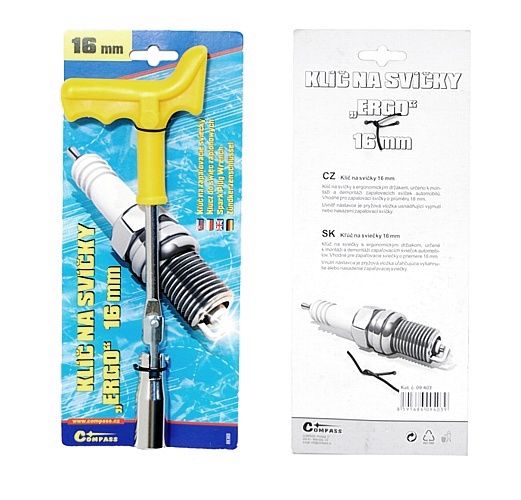 Kovový klíč (16 mm) určený k montáži nebo demontáži zapalovacích svíček automobilu. Kloubová redukce a speciální ergonomické zakončení klíče pro snazší manipulaci.