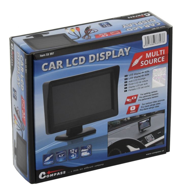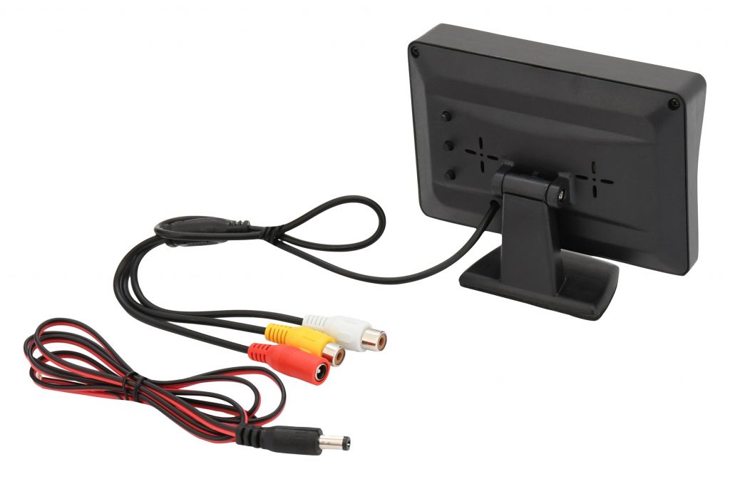 LCD displej se stojánkem je ideální pro parkovací kameru i k přehrávání NTSC/PAL videí z jakéhokoliv přehrávače s výstupním Cinch (RCA) kabelem. Na displeji lze pomocí stojánku nastavit sledovací úhel. Díky inteligentnímu software zařízení, je po zjištění signálu ve video vstupu automaticky aktivován obraz videa. Přednostní vstup AV2 je určen pro parkovací kameru, jejíž obraz bude vždy nadřazený a bude zobrazen vždy, když bude parkovací kamera aktivní.