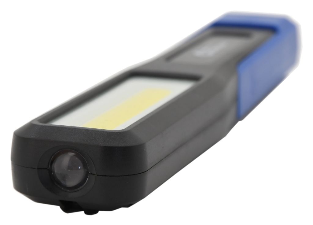Dobíjecí montážní LED lampa, s nízkou spotřebou energie, čelním bodovým osvětlením a bočním rozptýleným osvětlením s vysokou svítivostí, doplněná červeným SOS signálním osvětlením. Konstrukce je opatřena magnetem umístěným na otočném ramenu pro připevnění na kovové povrchy, háčkem pro snadné zavěšení a je odolná proti stříkající vodě. Nabíjení je řešeno USB kabelem.