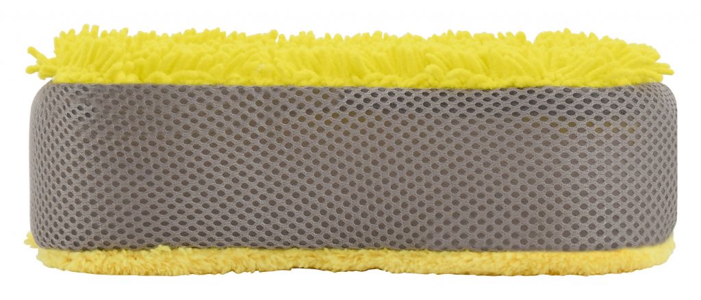 Oboustranná mycí houba s třásněmi z mikrovlákna na jedné straně, jemnou vrstvou na druhé straně a sítěnými boky vhodná ke komplexnímu mytí. Mycí houby tvoří standart, který je použitím mikrovlákenných třásní překonaný, díky šetrnosti a důkladnějším mycím schopnostem. Třásně z mikrovlákna absorbují více vody a nečistot, než běžné mycí pomůcky. Díky tomu chrání choulostivou karoserii před poškrábáním. Mikrovlákenné třásně umožní použít houbu v suchém stavu, jako účinnou prachovku. Jemná vrstva zadní strany houby, je v suchém stavu vhodná například pro aplikaci a roztírání vosků i jemných leštěnek. Boky jsou navíc opatřeny mřížkovanou strukturou pro očištění odolných nečistot. Houba s třásněmi je ideální k použití metodou dvou kbelíků, kdy v jednom je voda s autošamponem a ve druhém samotná voda k oplachu zachycených nečistot na houbě.