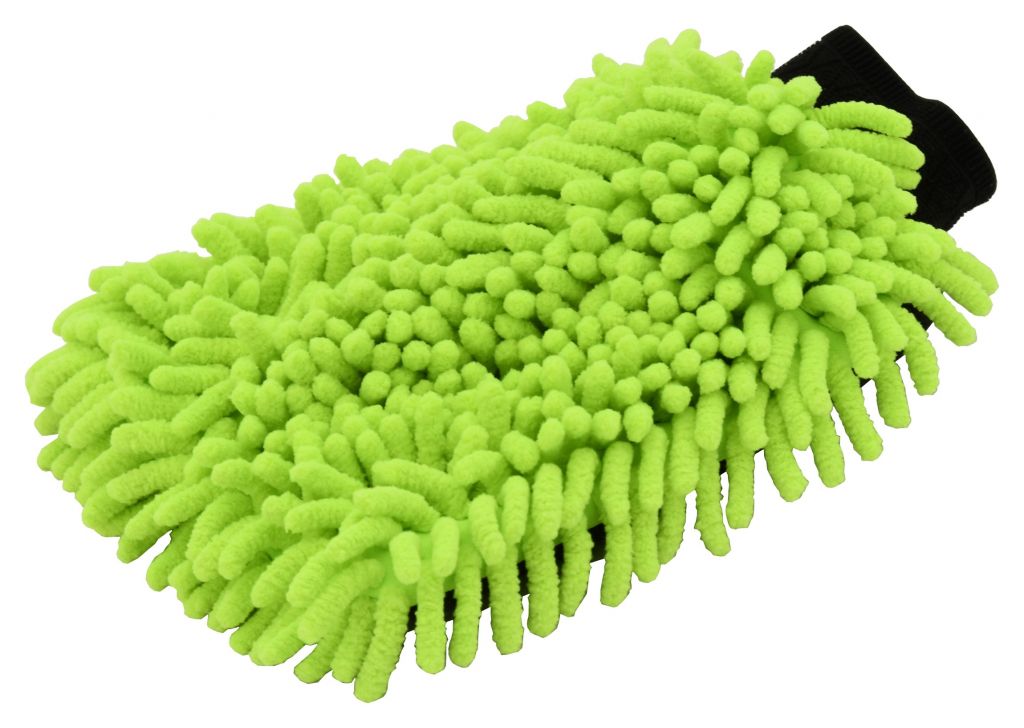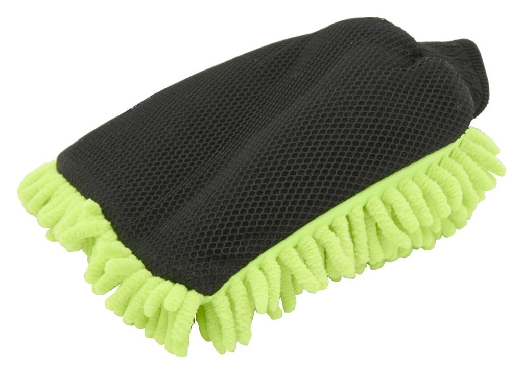 Oboustranná mycí rukavice s třásněmi z mikrovlákna a sítěnou zadní stranou vhodná k šetrnému mytí. Rukavice si získávají čím dál větší oblibu, díky dokonalému kopírování karoserie.Mimo jiné i díky citu při „zadrhnutí“ o odolnější nečistoty. Třásně z mikrovlákna absorbují více vody a nečistot, než běžné mycí pomůcky. Díky tomu chrání choulostivou karoserii před poškrábáním. Mikrovlákenné třásně umožní použít rukavici v suchém stavu, jako účinnou prachovku. Zadní strana rukavice je navíc opatřena mřížkovanou strukturou pro očištění odolných nečistot. Rukavice je ideální k použití metodou dvou kbelíků, kdy v jednom je voda s autošamponem a ve druhém samotná voda k oplachu zachycených nečistot na rukavici.