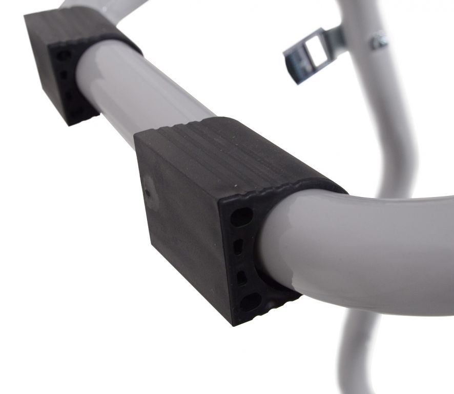 Univerzální nosič jízdních kol, s jednoduchým systémem upevnění na zadní dveře. Do nosiče je možné umístit až 3 běžná jízdní kola. Upevnění kola do nosiče pomocí jednoduchých objímek s fixační sponou, kterou lze upevnit i jednou rukou. Všechny části nosiče, které jsou v kontaktu s vozem, jsou opatřeny chrániči. Vyrobeno z oceli s antikorozní úpravou. Nosič se na vůz upevňuje systémem textilních upínacích pásů. Upozornění: Nosič lze použít pouze u vozidel, kde nosič, nebo v něm upevněná jízdní kola, nezakryjí registrační značku ani zadní světla automobilu. V opačném případě je nutné použít doplňková zadní světla s držákem registrační značky (nejsou součástí nosiče).