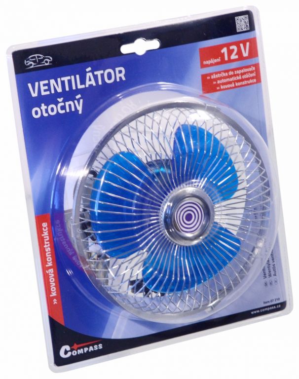 Otočný třílopatkový ventilátor pro vozidla Vám zpříjemní horké letní dny na cestách. Připevnění lze provést pomocí vrutů. Přívodní kabel je zakončený zástrčkou do zásuvky autozapalovače. Automaciky se otáčí, což zajišťuje příjemný přísun česrvého vzduchu bez hrozby nachlazení.