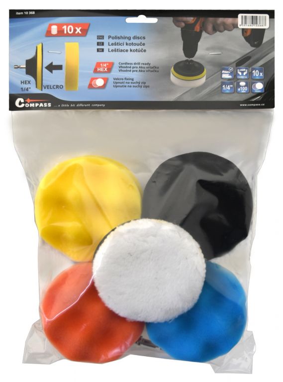 Compass Sada leštících kotoučů 10 ks s unašečem, 10 cm