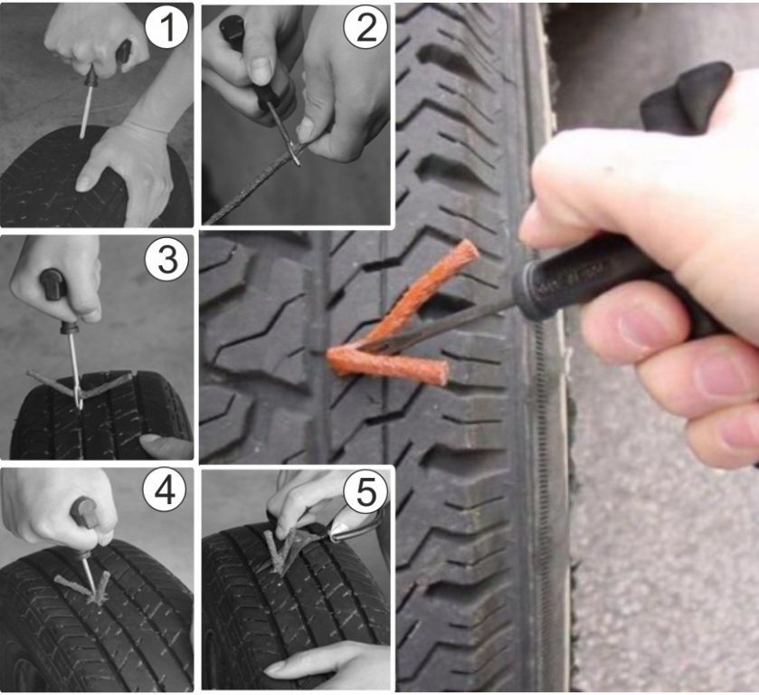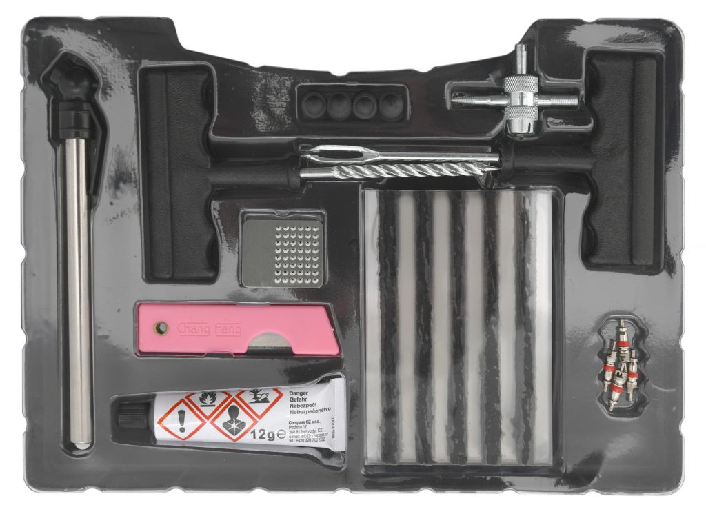 Tato sada je vhodná jak pro automobily, tak pro motocykly, čtyřkolky a další bezdušové pneumatiky.