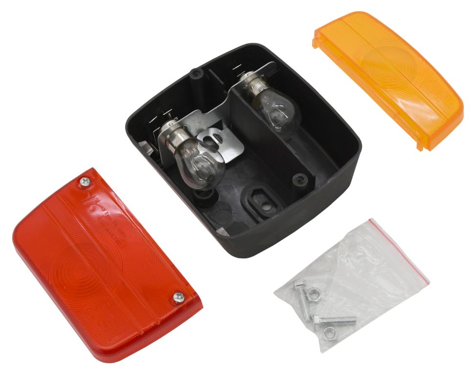 Svítilna je opatřena obrysovým, brzdovým, směrovým světlem a osvětlením SPZ. Univerzální použití zajišťuje možnost připevnit pomocí přiložených šroubků na libovolné místo na levou i pravou stranu. Balení obsahuje standartní 12V žárovky. Pro výměnu žárovek je třeba odšroubovat celý přední kryt svítilny. Pro použití u 24V systému je třeba nahradit 12V žárovky za 24V žárovky.