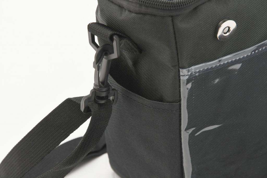 Termotaška k zavěšení na opěrku hlavy u přední sedačky automobilu, vhodná i k přenášení pomocí ramenního popruhu.
