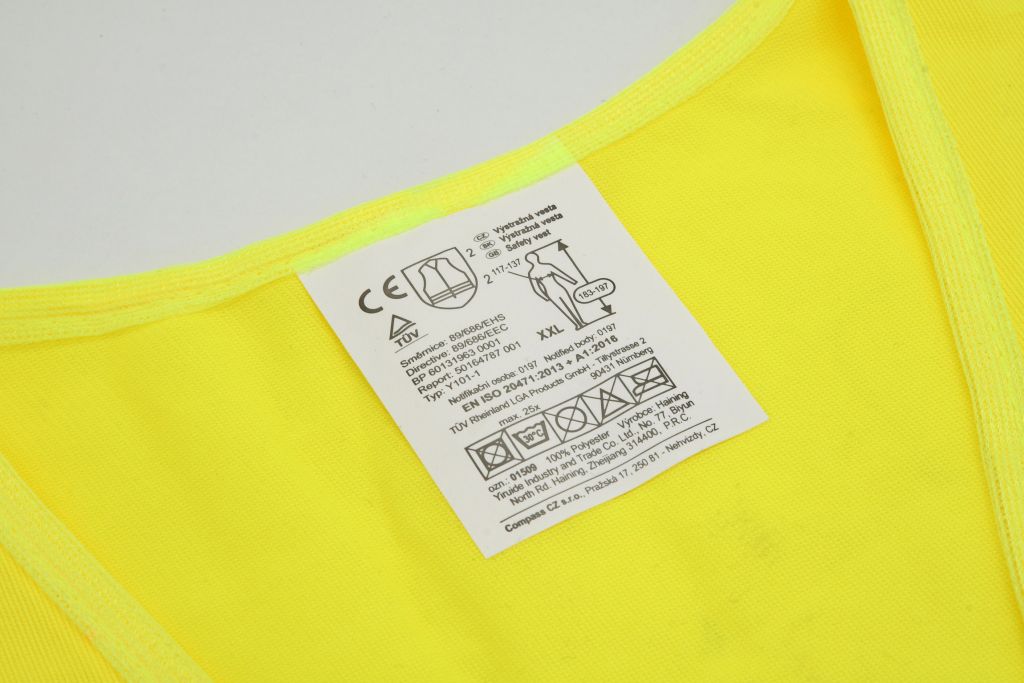 Výstražná reflexní vesta se zapínáním na suchý zip a dvěma reflexnímy pruhy po celém obvodu. Vesta se obleče na stávající oděv tak, aby žádná její část nebyla překryta jinými částmi oděvu a na přední straně se zapne pomocí suchého zipu.