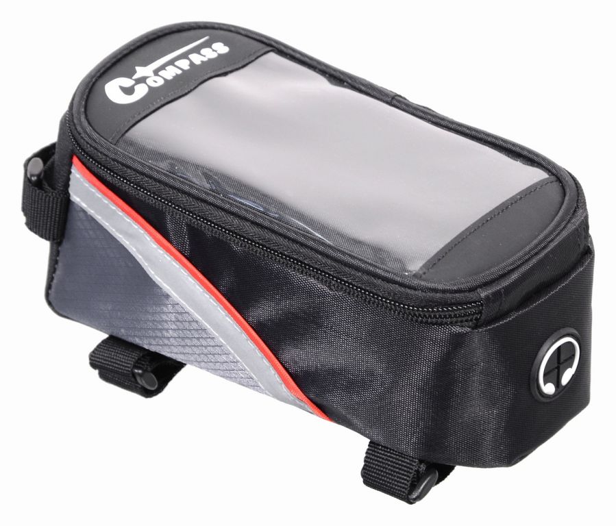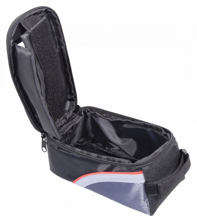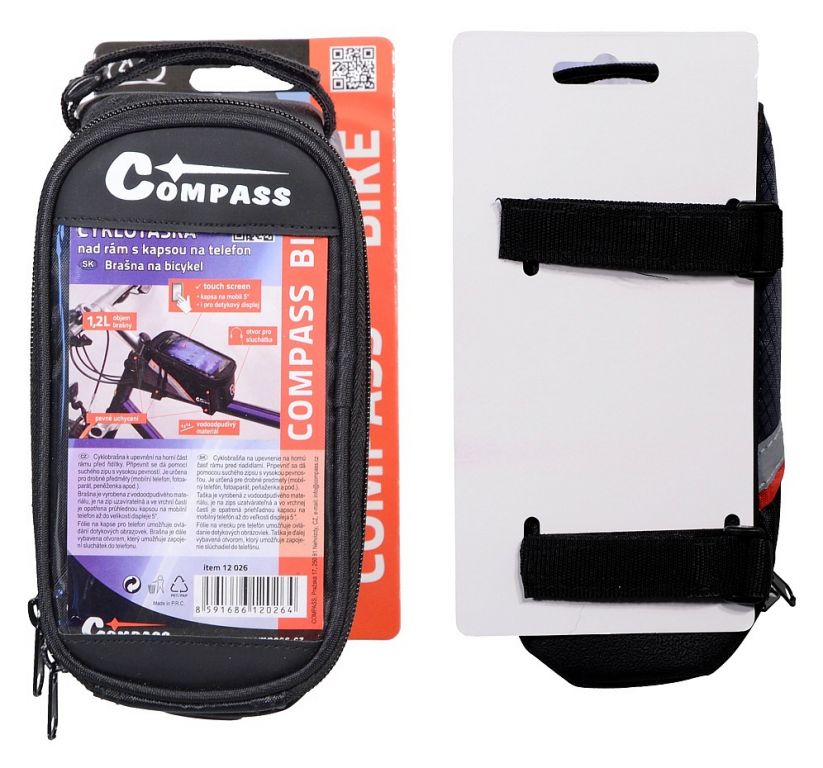 Připevnit se dá pomocí suchého zipu s vysokou pevností. Brašna je vyrobena z vodoodpudivého materiálu, je na zip uzavíratelná a ve vrchní časti je opatřena průhlednou kapsou na mobilní telefon až do velikosti displeje 5“. Fólie na kapse pro telefon umožňuje ovládání dotykových obrazovek. Brašna je dále vybavena otvorem, který umožňuje zapojení sluchátek do telefonu.