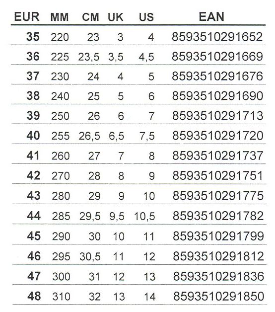 má svršek boty vyrobený z umělé kůže potažený uvnitř boty zateplovací měkkou vložkou, která chrání nohy před prochladnutím. Ocelový, na povrchu poniklovaný nůž s břitem, lze dobře nabrousit.