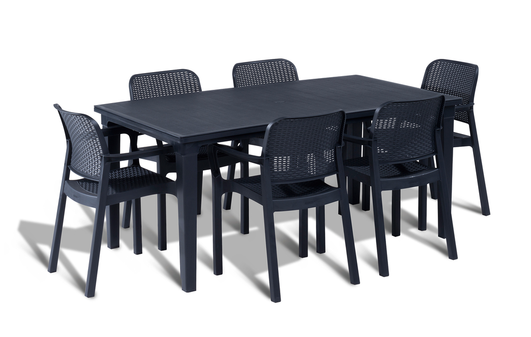 Robustní plastová konstrukce je odolná vůči povětrnostním vlivům, UV záření i mechanickému poškození. Křeslo je stohovatelné, což usnadňuje jeho skladování. Údržba je jednoduchá – stačí otřít vlhkým hadříkem. Maximální nosnost 100 kg zaručuje bezpečné použití.
