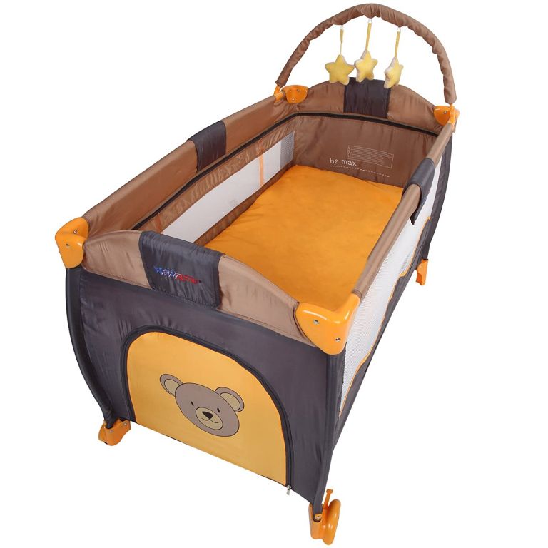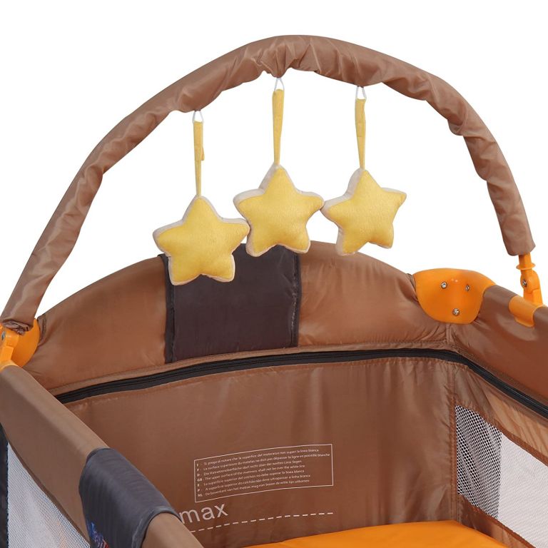 Tato dětská postýlka je opravdu praktická. Nabdne Vám hrací oblouk a přebalovací podložkou pro kojence. Matrace je polstrovaná. Herní oblouk je se zavěšenými plyšovými hvězdami. Postýlka má praktický vstup na zip a úložný prostor na předních stranách, polstrované hrany a zaoblené rohy pro děti do věku 36 měsíců nebo pro maximální hmotnost cca 15 kg. Omyvatelný potah Vám nabízí snadnou údržbu. Postýlka se snadno složí a úsporně uschová.