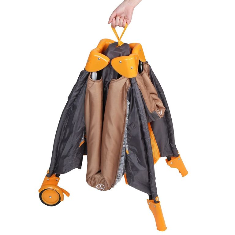Dětská postýlka, cestovní, oranžová/šedá
