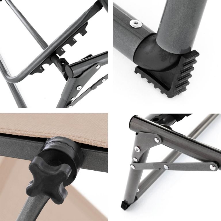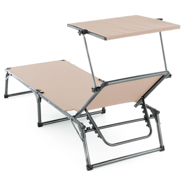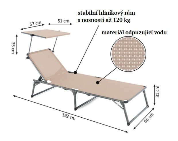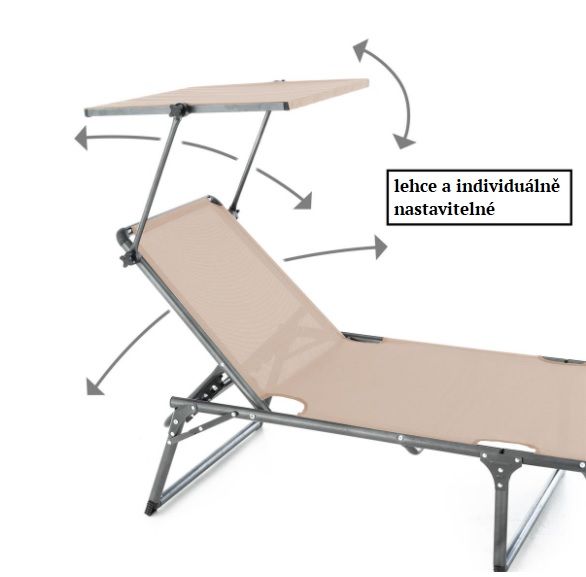 Ať už k relaxaci při čtení knihy, k spánku nebo jen na opalování. Stříška je sklopná, lze si ji tak libovolně nastavit. Lehátko je pokryto snadno ošetřitelným, vodu odpuzujícím materiálem. Rám je velice stabilní díky třem nohám. Nožičky jsou osazeny protiskluzovou ochrannou krytkou, která také přispívá k lepší stabilitě lehátka. Lehátko je sklopné a lze jej úsporně uskladnit a snadno přepravovat.