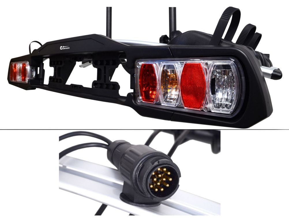 Univerzální nosič jízdních kol s jednoduchým systémem upevnění, sklápěním pro přístup do kufru, s kompletně osvětleným panelem a místem pro SPZ.