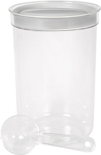 Praktická dóza s víkem a odměrkou pro všestranné využití.