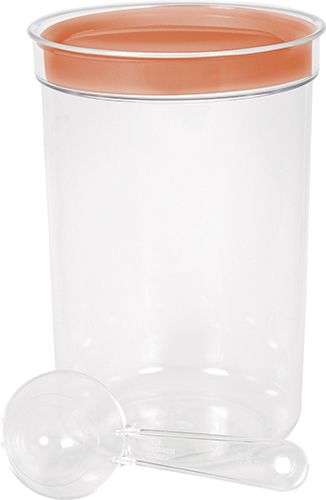 Praktická dóza s víkem a odměrkou. Dóza na ovesné vločky, ořechy, sušenky, cukr, sůl, kávu, čaj, atd. Vyrobena z vysoce kvalitního plastu o objemu 1,7 l. Můžete si vybrat z barevného mixu - víčka barvy broskvové, mintové či světle šedé.