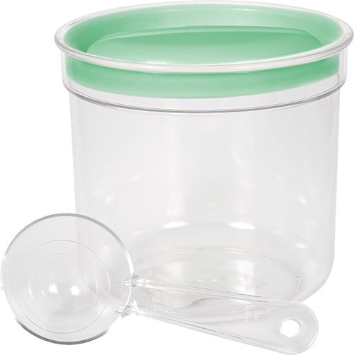 Praktická dóza s víkem a odměrkou pro všestranné využití.